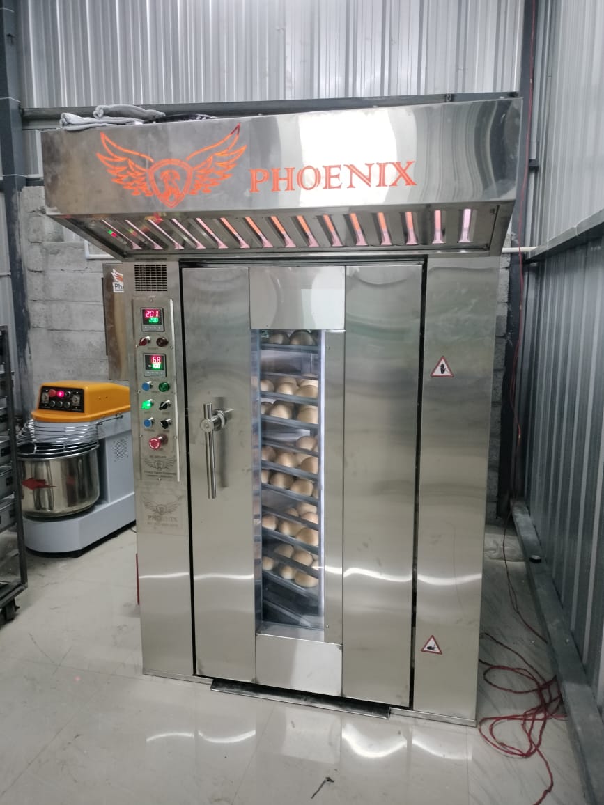 A rotary oven is an oven where the food rotates while baking so that heat is distributed evenly.
